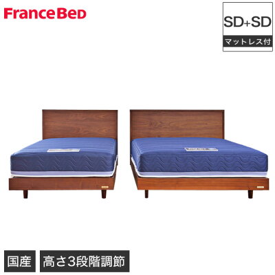 \ポイント11倍★6/4 20:00〜6/14 23:59まで★/ フランスベッド 65周年モデル 2台セット すのこベッド【国産】ウォールナット突板 メモリーナDLX 東洋紡ブレスエアー入りエクストラマットレス付2台セット セミダブル+セミダブル